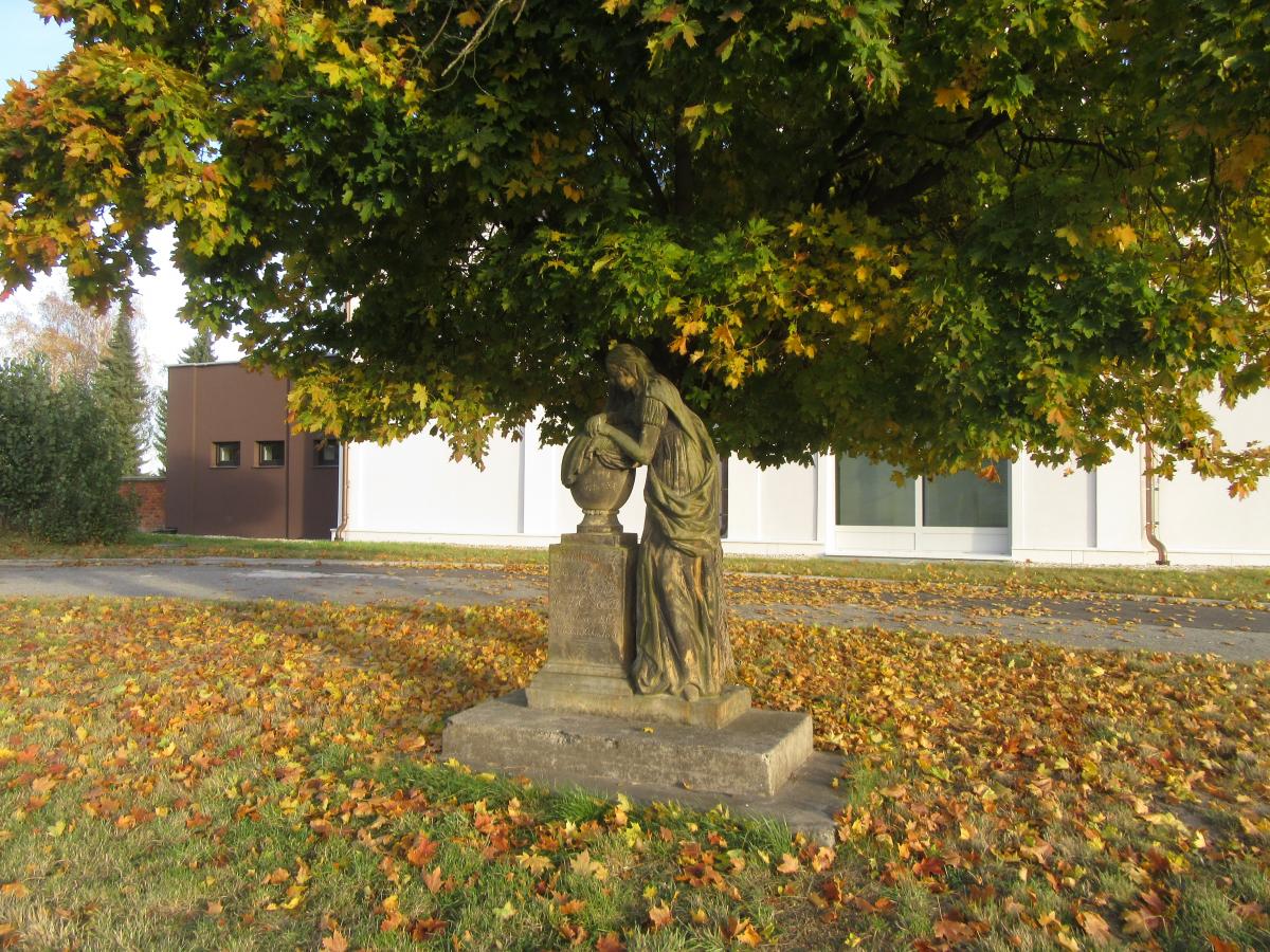 Zábřeh Socha byla po renovaci přemístěna v roce 2023 z místa před hřbitovem dovnitř k jeho zadní stěně.