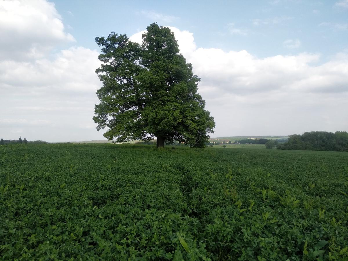 Památka je oborána (v poli bez přístupové cesty):