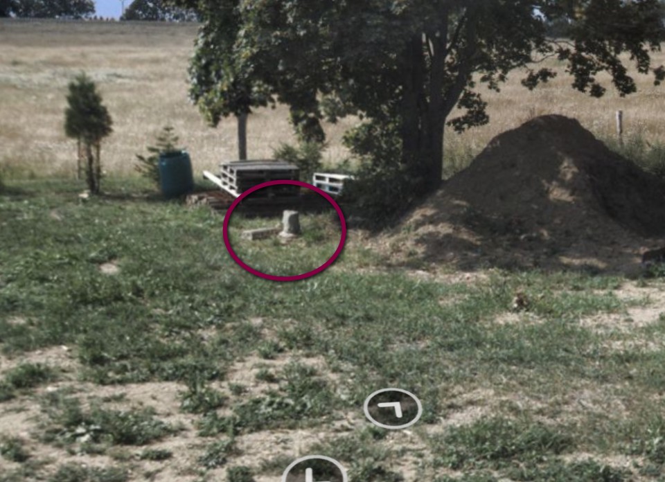 Pod stomy u brány do dvora je vyvrácený kamemmý sloupek, snad z ohrazení kolem sochy. Zda se však jedná opravdu o součást této památky je značně nejisté, protože ta stávala na protější straně silnice, než je objevený artefakt.