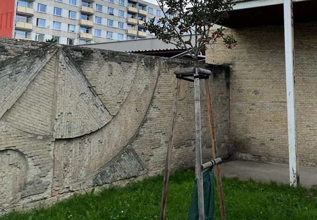 Bílina Reliéf vyskládaný z malých dlaždic u prodejny Tesco v Bílině