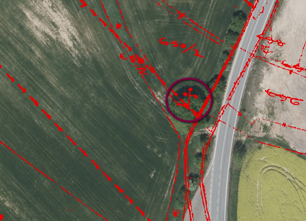 Kocbeře pravděpodobně se jednalo o kříž ve skupině stromů, v říjnu 2023 nenalezen