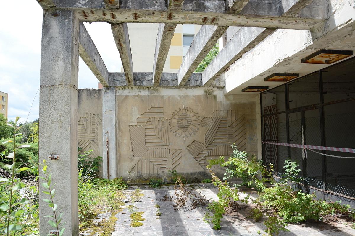 Litvínov Reliéfy na budově bývalé restaurace Pod lesem čp. 2119 v Tylově ulici v Litvínově