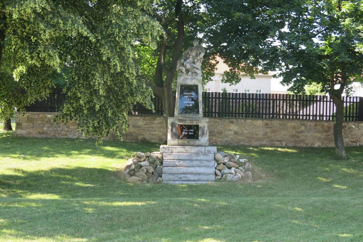 Břvany Pomník na půlkruhové návsi, deska s nápisy chybí, Centrální evidence válečných hrobů: je evidován, CZE-4207-00178 http://www.vets.cz/vpm/18131-pomnik-obetem-1-svetove-valky/#18131-pomnik...