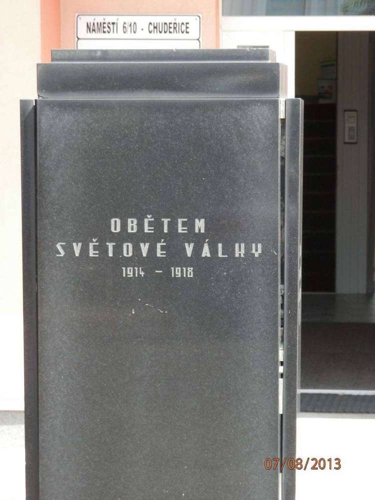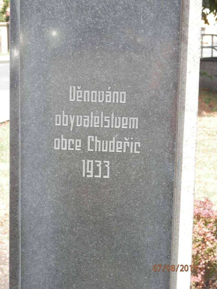 Chudeřice u Bíliny V Chudeřicích na náměstí, zajímavostí je, že nápisy, ač pocházejí z předválečné doby, jsou čistě české.